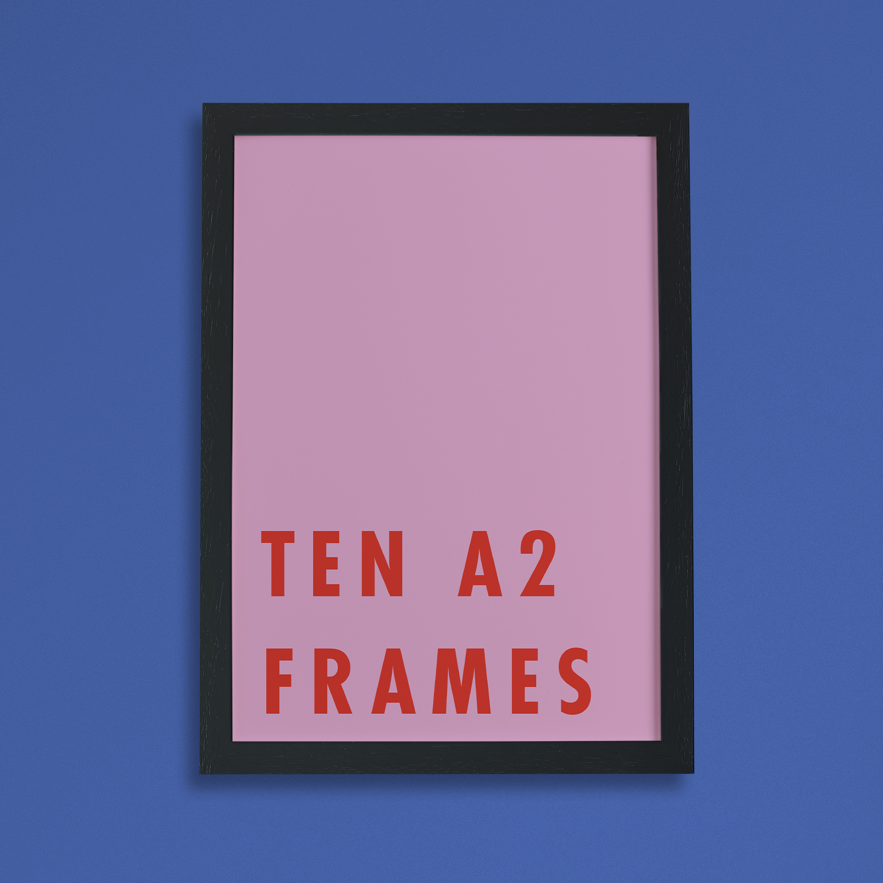 Pack of 10 frames available in 3 different colour mouldings. There is no mount in these frames, they just take an A2 print.