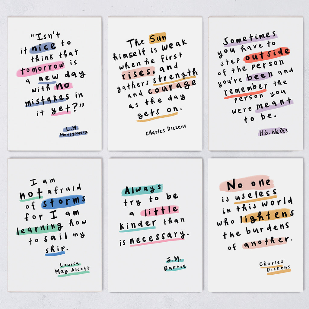 Set of twelve postcards featuring encouraging and inspiring quotes from classic literature.