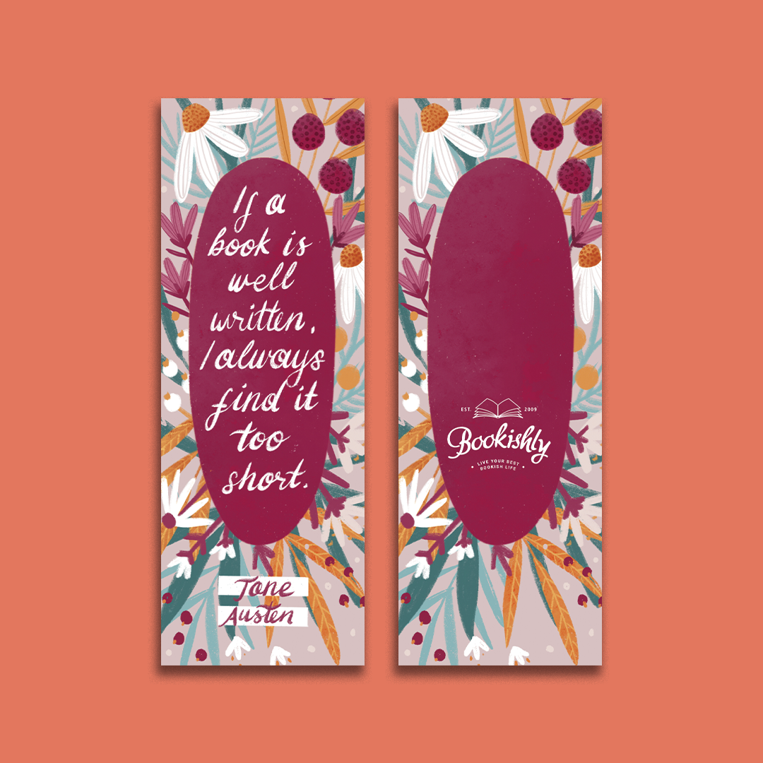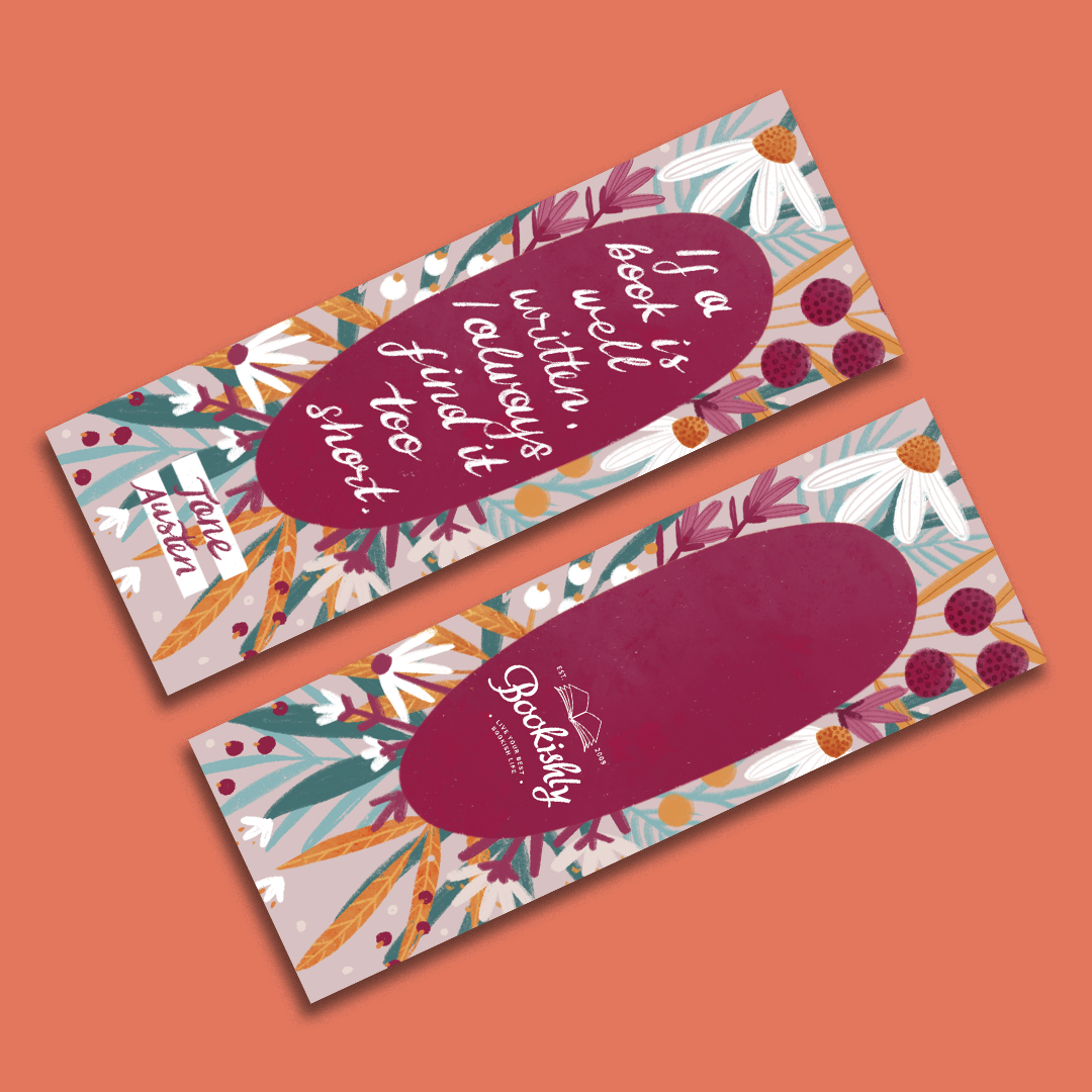 A wonderful literary bookmark with a beautiful floral design featuring a quote from Jane Austen's Sense and Sensbility.
