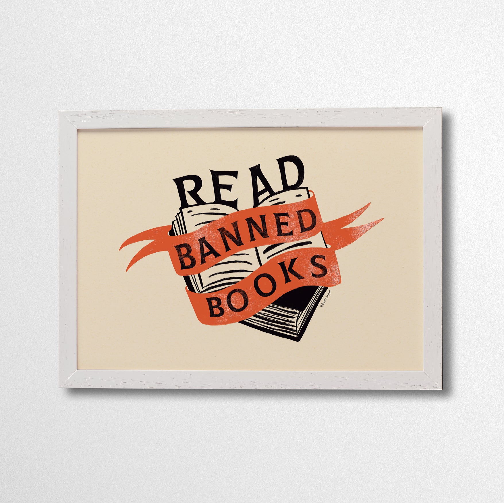 A4 unframed print with our famous 'Read Banned Books' motif.