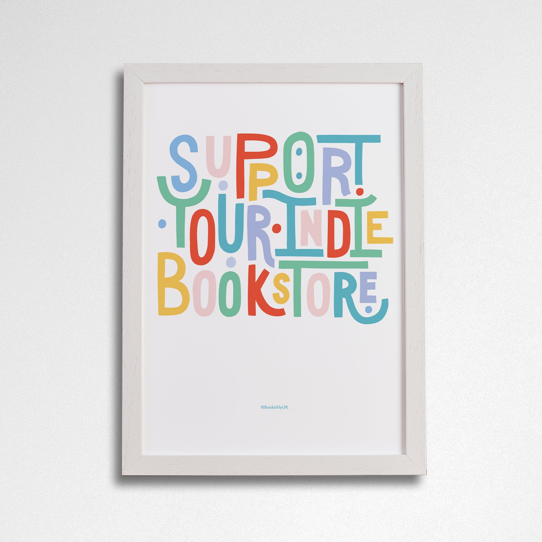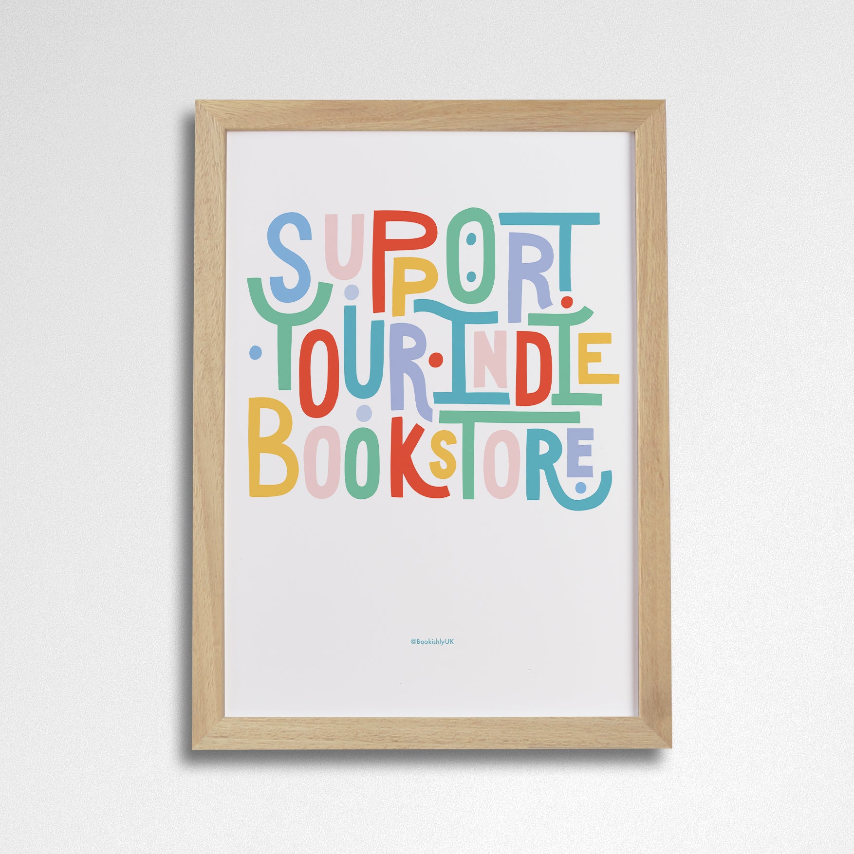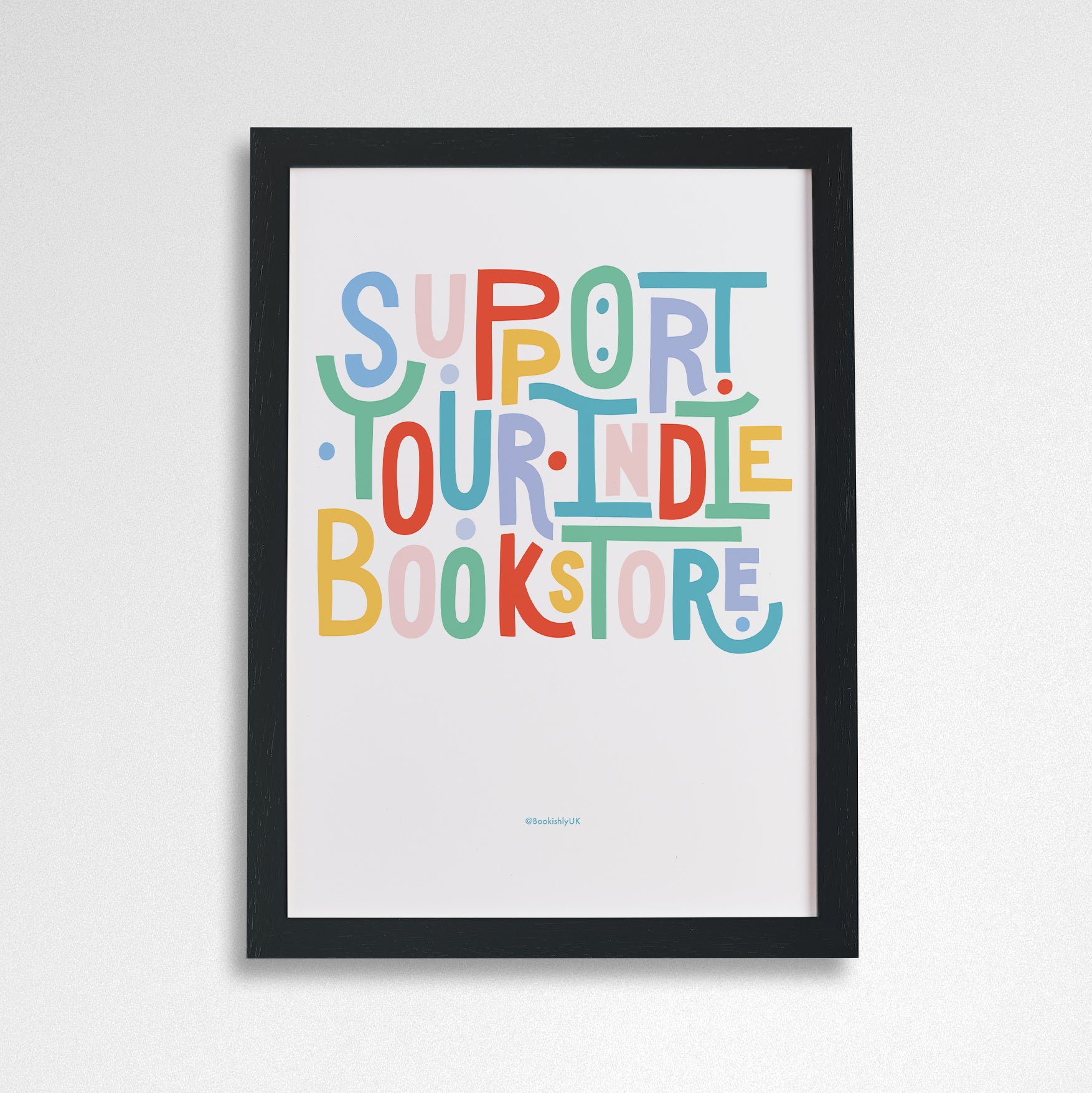 Celebrate the heart and soul of literary culture with our typographic art print, "Support Your Indie Bookstore" - a powerful reminder to cherish and sustain the unique, irreplaceable hubs of creativity, community, and independent thought that local bookstores represent.