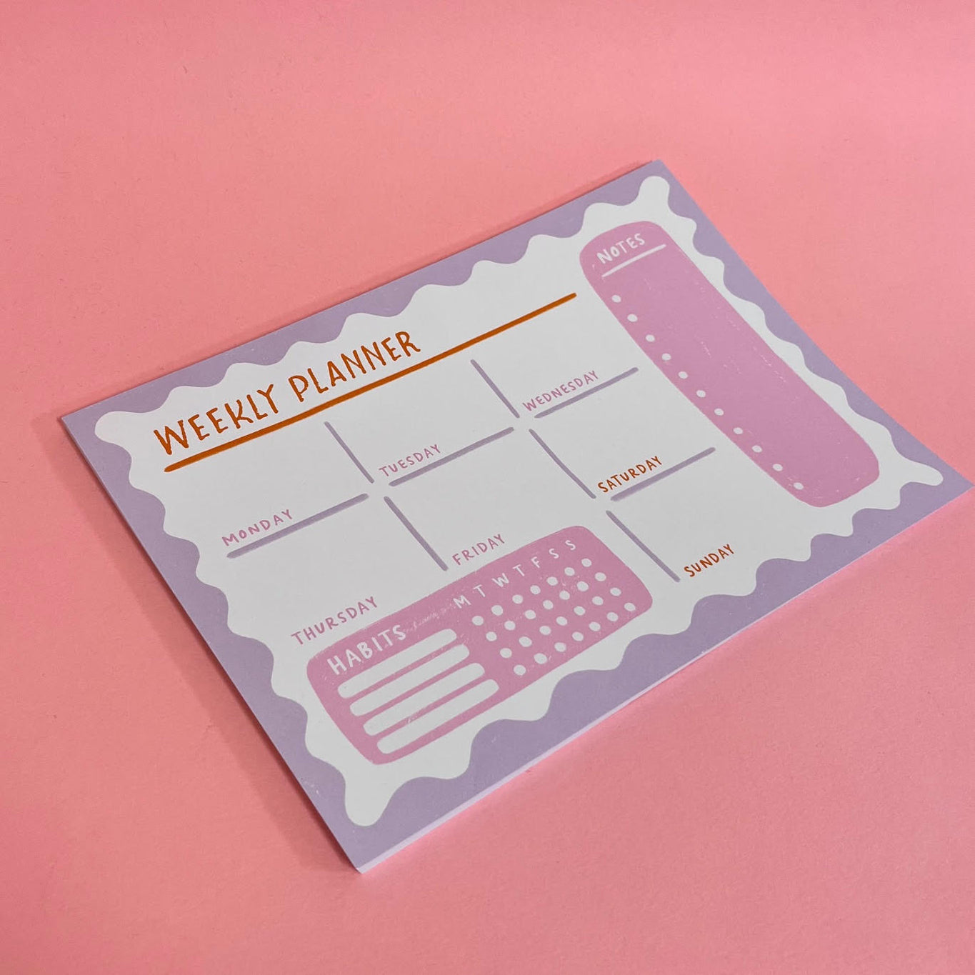Enhance your productivity and add a pop of color to your desk with our A4 organisation desk pad with a space for days of the week, habit trackers and notes. It's not just a tool for organization - it's a stylish accessory that reflects your unique personality.