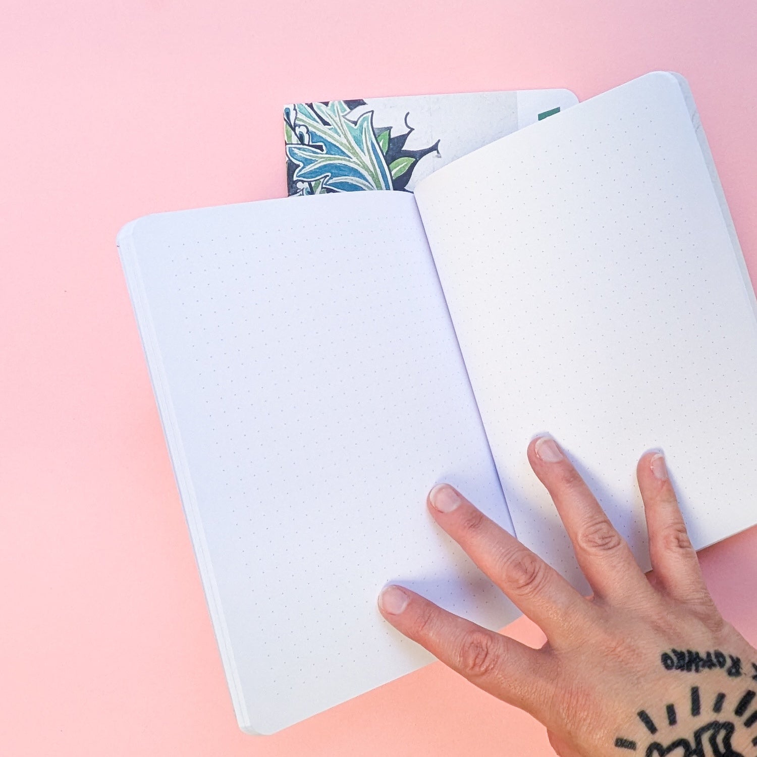 Inside, you'll find a clever combination of half lined and half dotted pages. The lined sections are perfect for structured note-taking, while the dotted sections provide flexibility for doodling, sketching, bullet journaling, or creating your own layouts.
