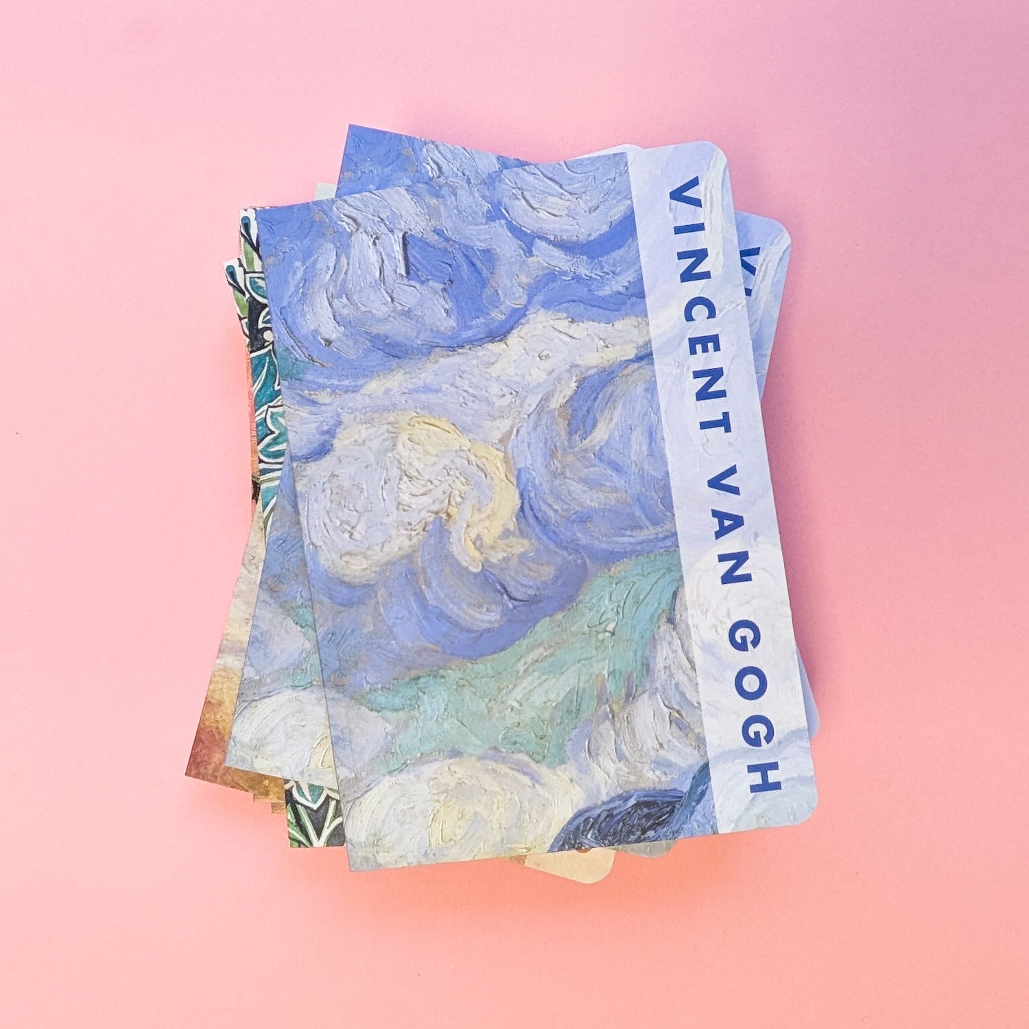 This A5 lined + dotted notebook features a close-up of the sky from Van Gogh’s Wheat Field with Cypresses, highlighting his signature brushstrokes and vivid colour palette.