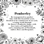 Pemberley has beautiful base notes of English Pear accompanied by a stunning blend of patchouli, amber, rose and bergamot. Imagine it as a walk starting inside the stunning home and out into the beautiful gardens.
