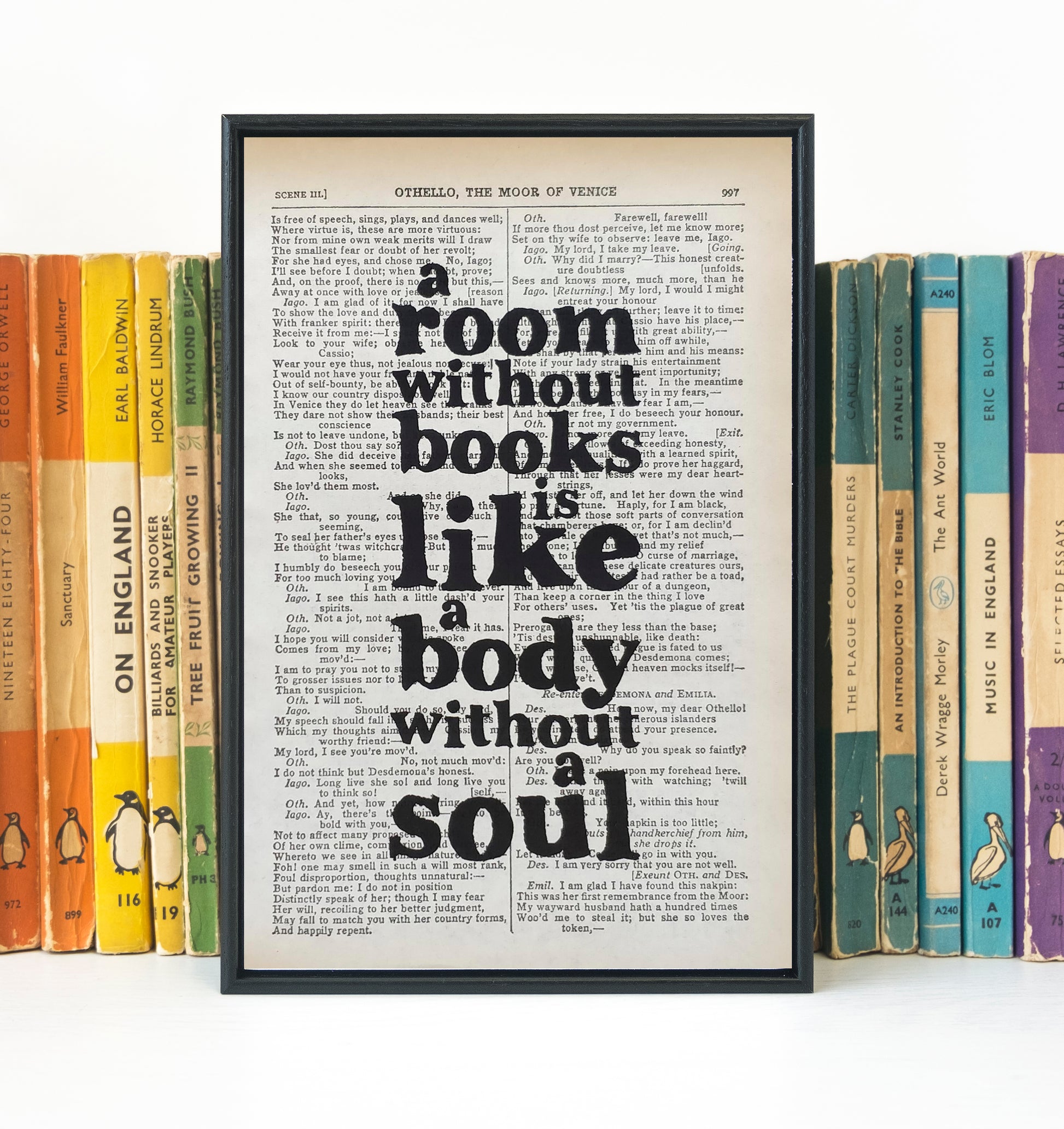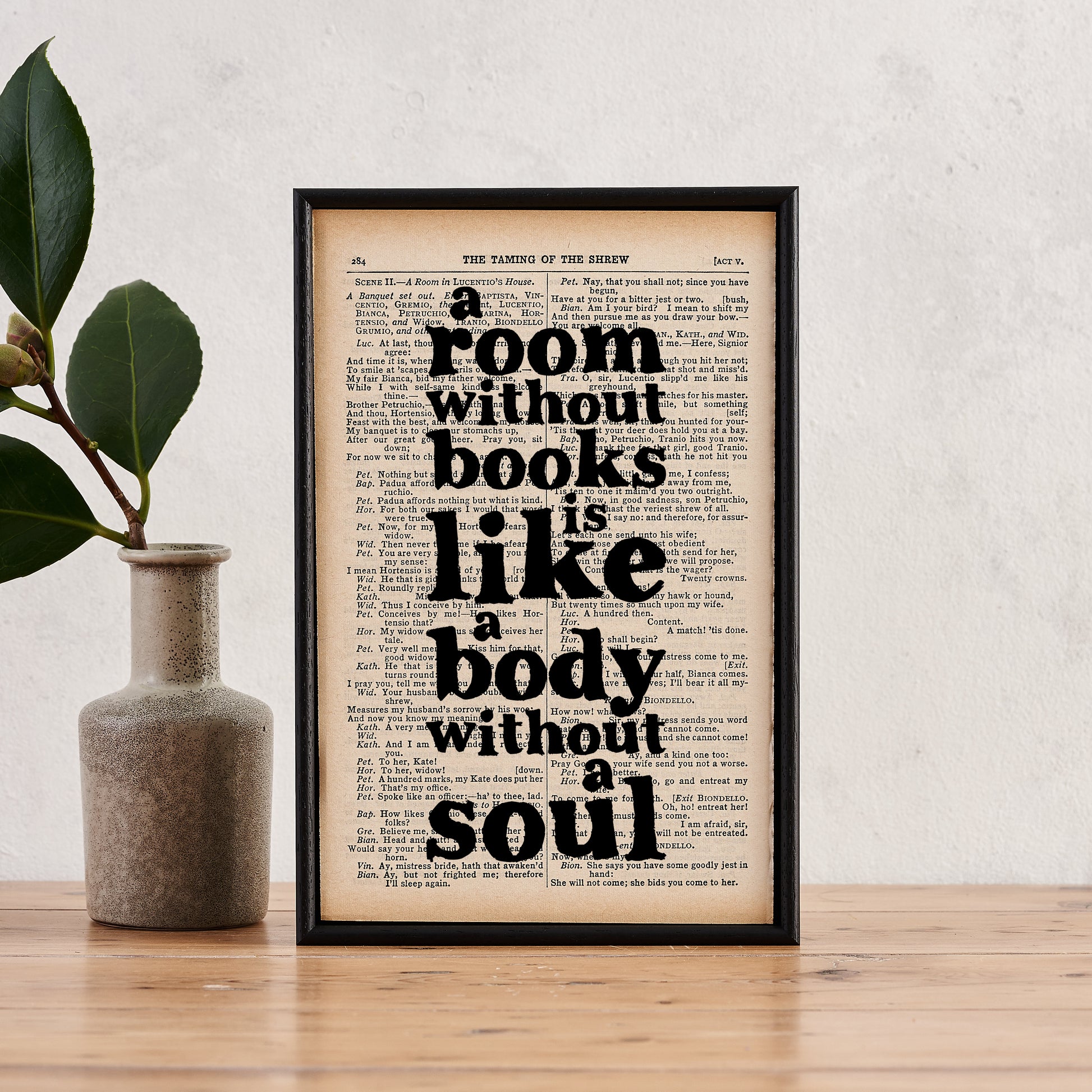 Cicero's quote perfectly encompasses the feelings of many a book lover. Printed over an antique dictionary.